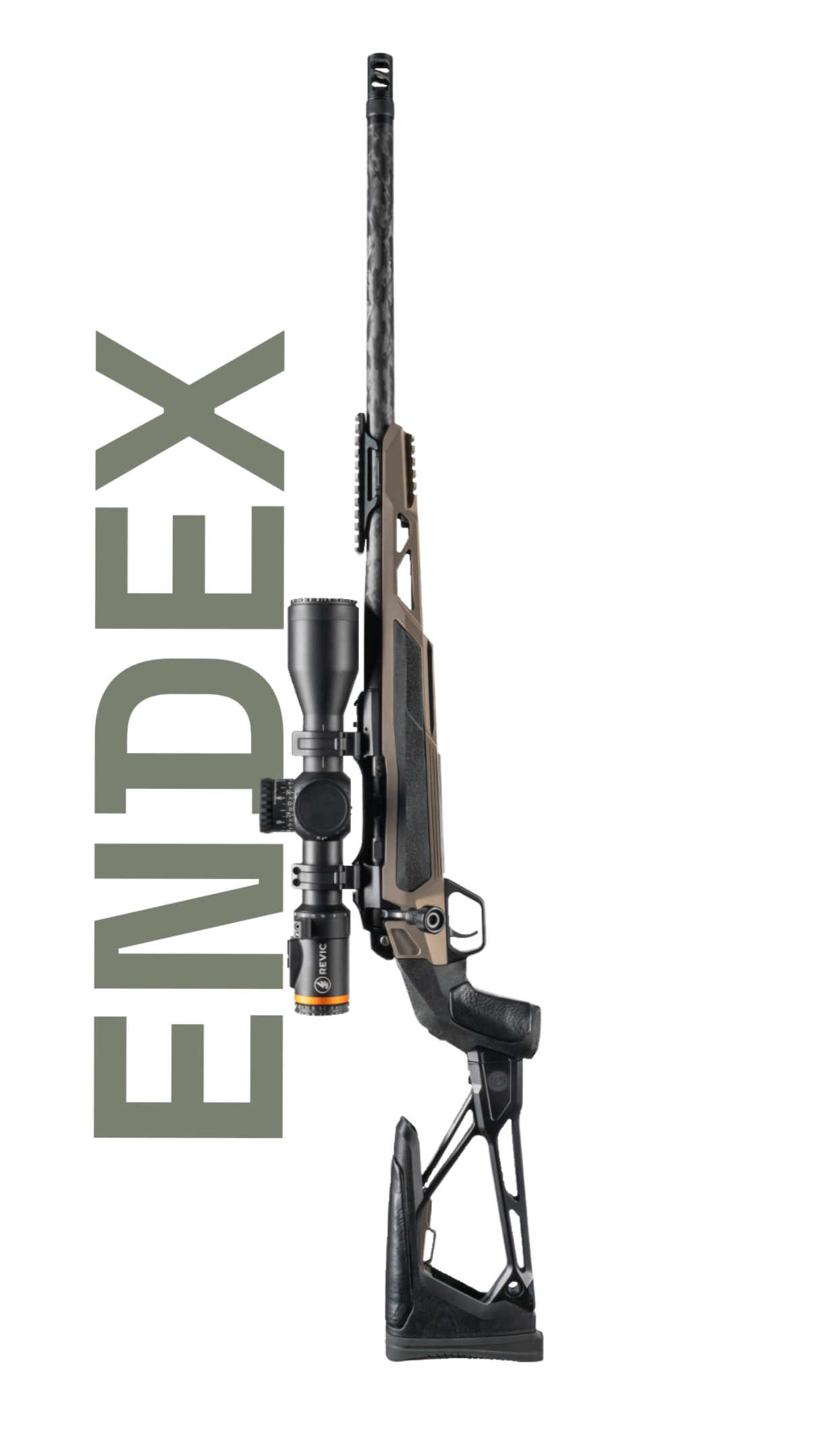 Stock - Endex billet aluminum chassis with carbon fiber butt and side panel inserts. Adjustable comb height. 13.5 in LOP standard with options for 13.75” and 14.0”. Optional night vision picatinny rail.